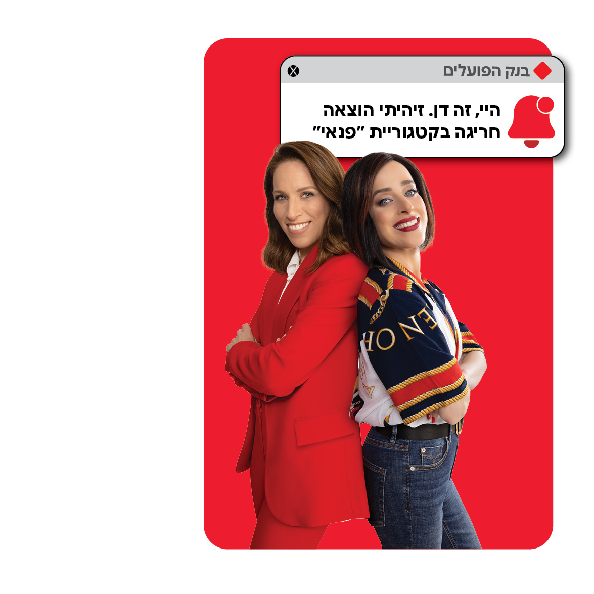 - בכפוף לתנאי הבנק ותנאי השירות באפליקציה.